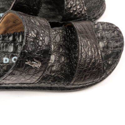 Chất liệu quai da cá sấu thật 100%, nền dép da bò thật vân cá sấu.