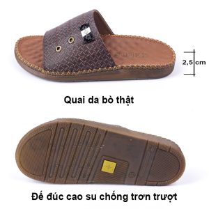 Dép nam đế may sẵn da bò quai ngang hàng hiệu Keedo